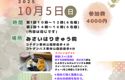東洋医学は心と身体を診る医学です。その人の心と身体の不調や症状を、個別かつ全体的に診察を行い自己の治癒力を生かしながら不調や病気の改善を図ります。