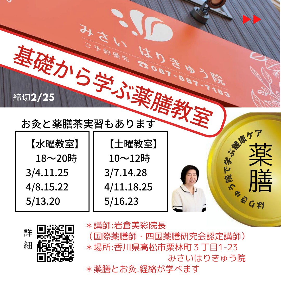 基礎から学ぶ薬膳教室INみさいはりきゅう院